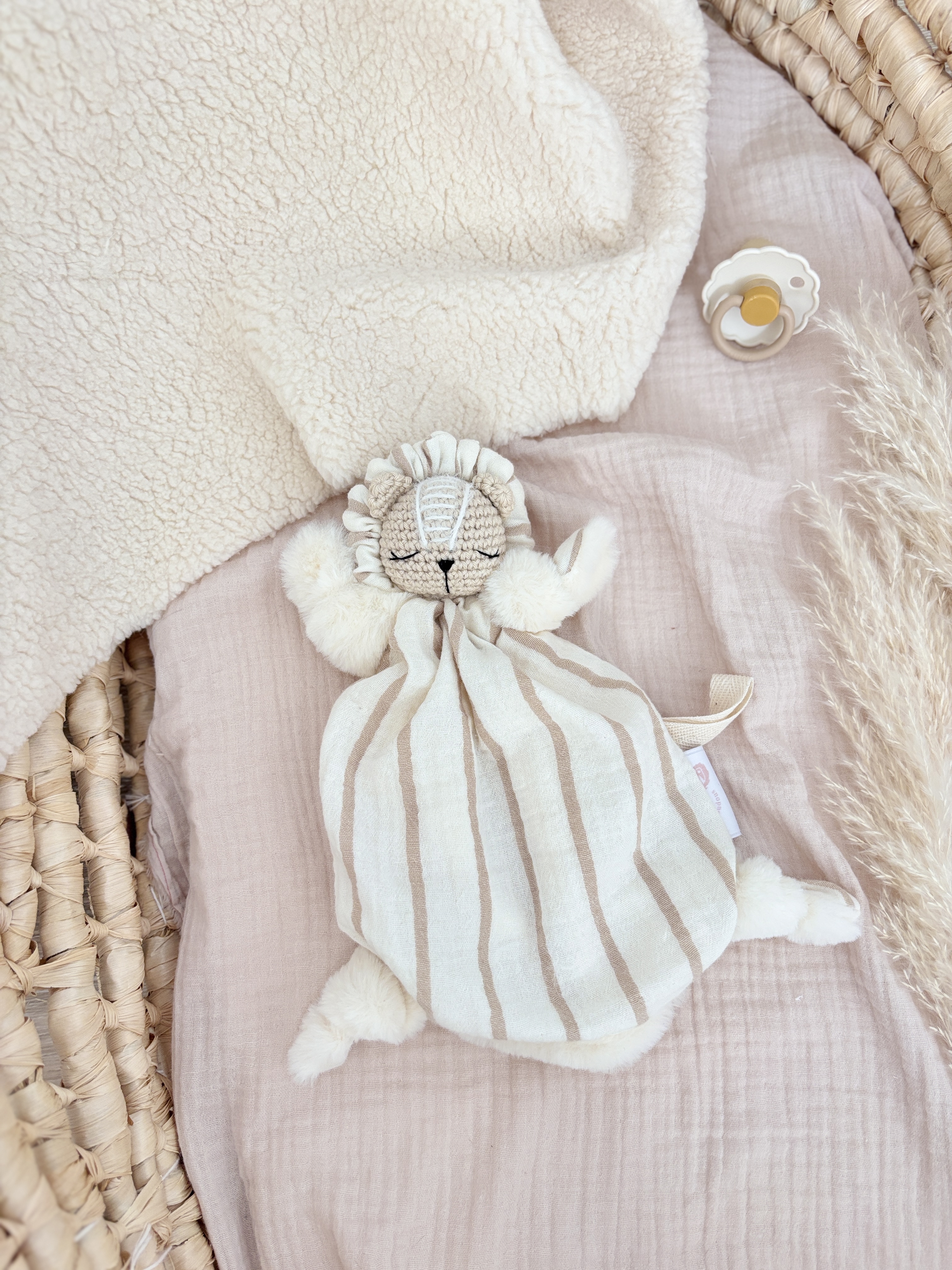 Il est composée de fausse fourrure Oeko-Tex et de double gaze en coton biologique.