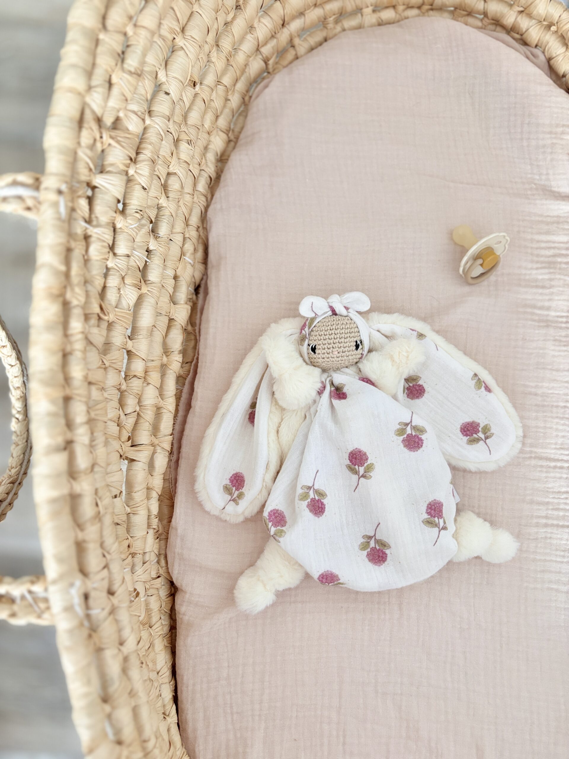 Chaque doudou est réalisé entièrement à la main, et est donc unique, il se peut donc que le doudou que vous recevrez présente des petites différences avec le doudou de la photographie.