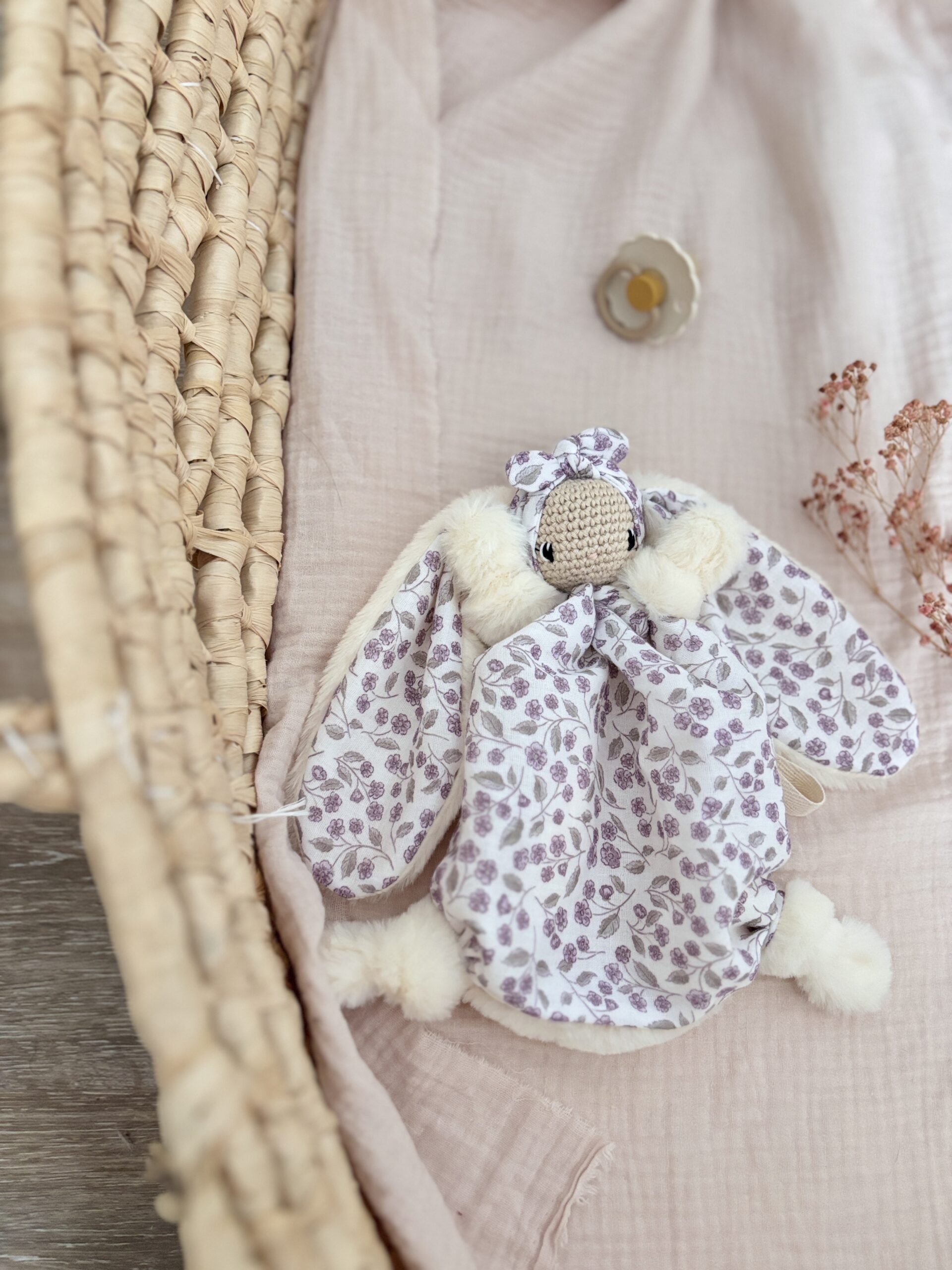 Chaque doudou est réalisé entièrement à la main, et est donc unique, il se peut donc que le doudou que vous recevrez présente des petites différences avec le doudou de la photographie.