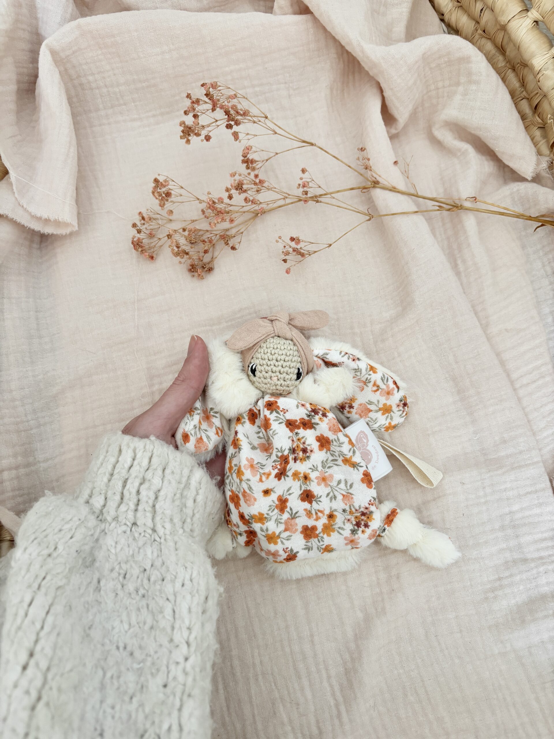 Chaque doudou est réalisé entièrement à la main, et est donc unique, il se peut donc que le doudou que vous recevrez présente des petites différences avec le doudou de la photographie.