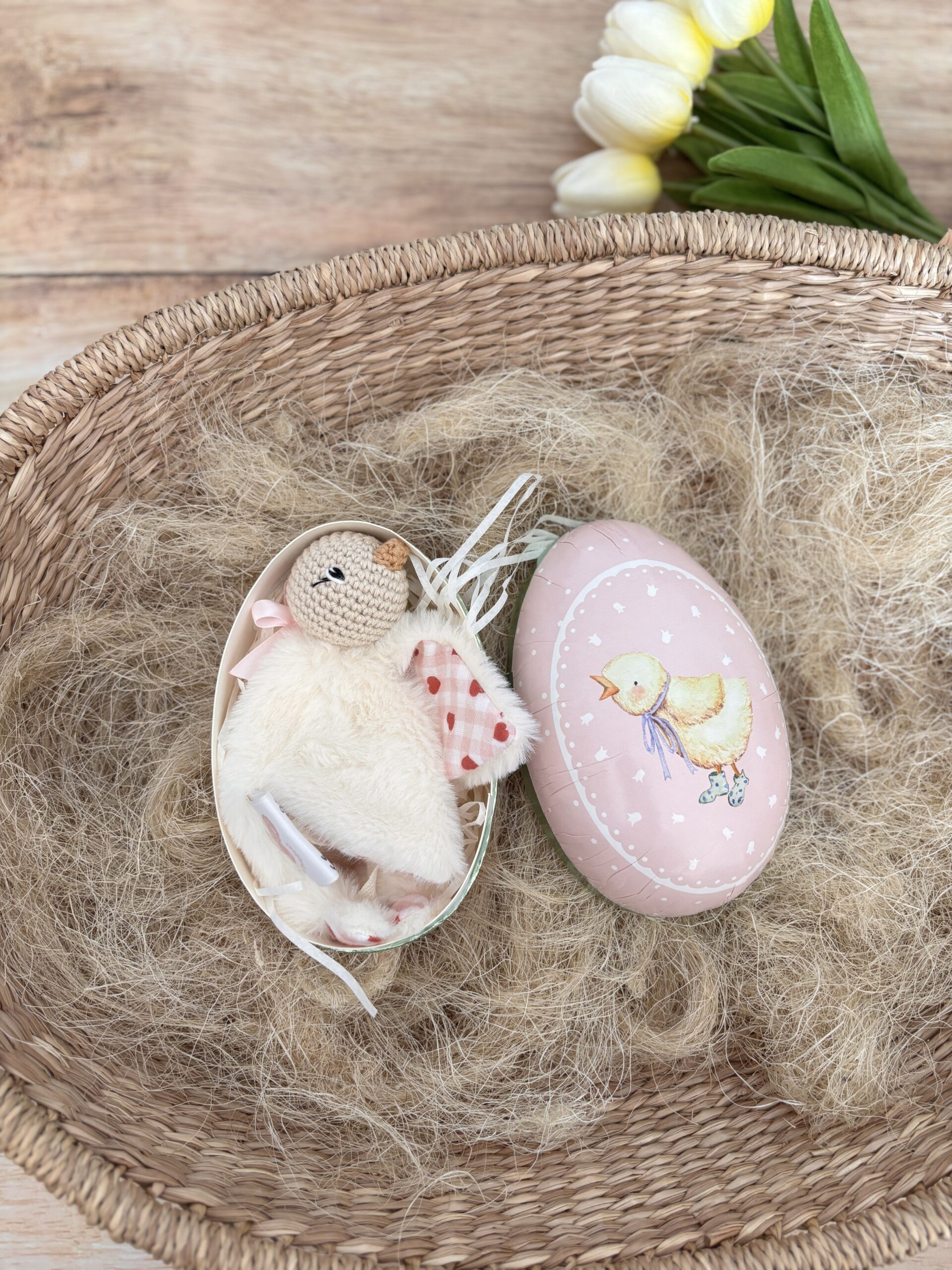 Un joli œuf de Pâques qui renferme une adorable mini oie toute douce.