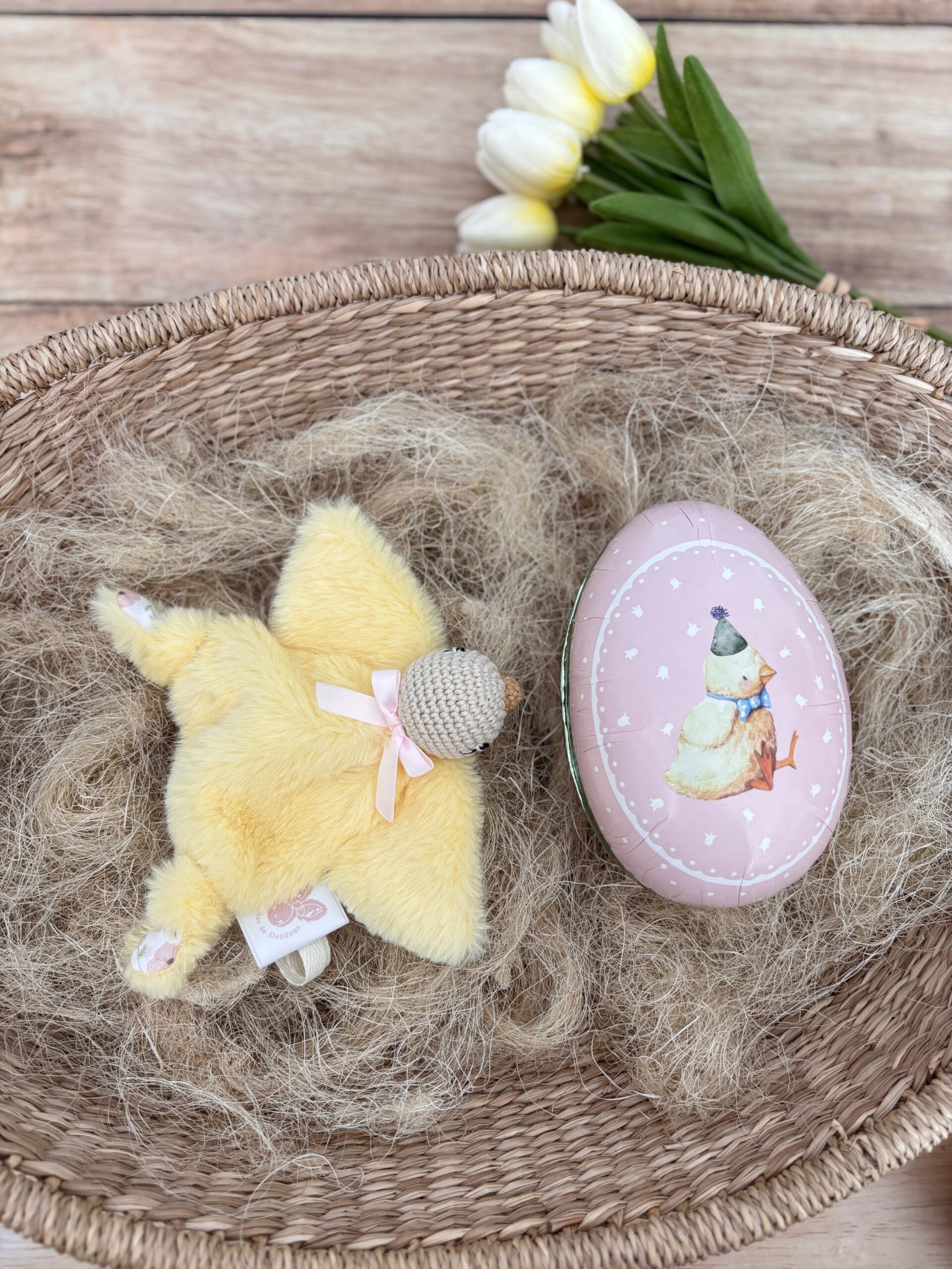 Parfait comme premier doudou ou petite surprise de Pâques, ce mini poussin accompagnera bébé bien après les fêtes.