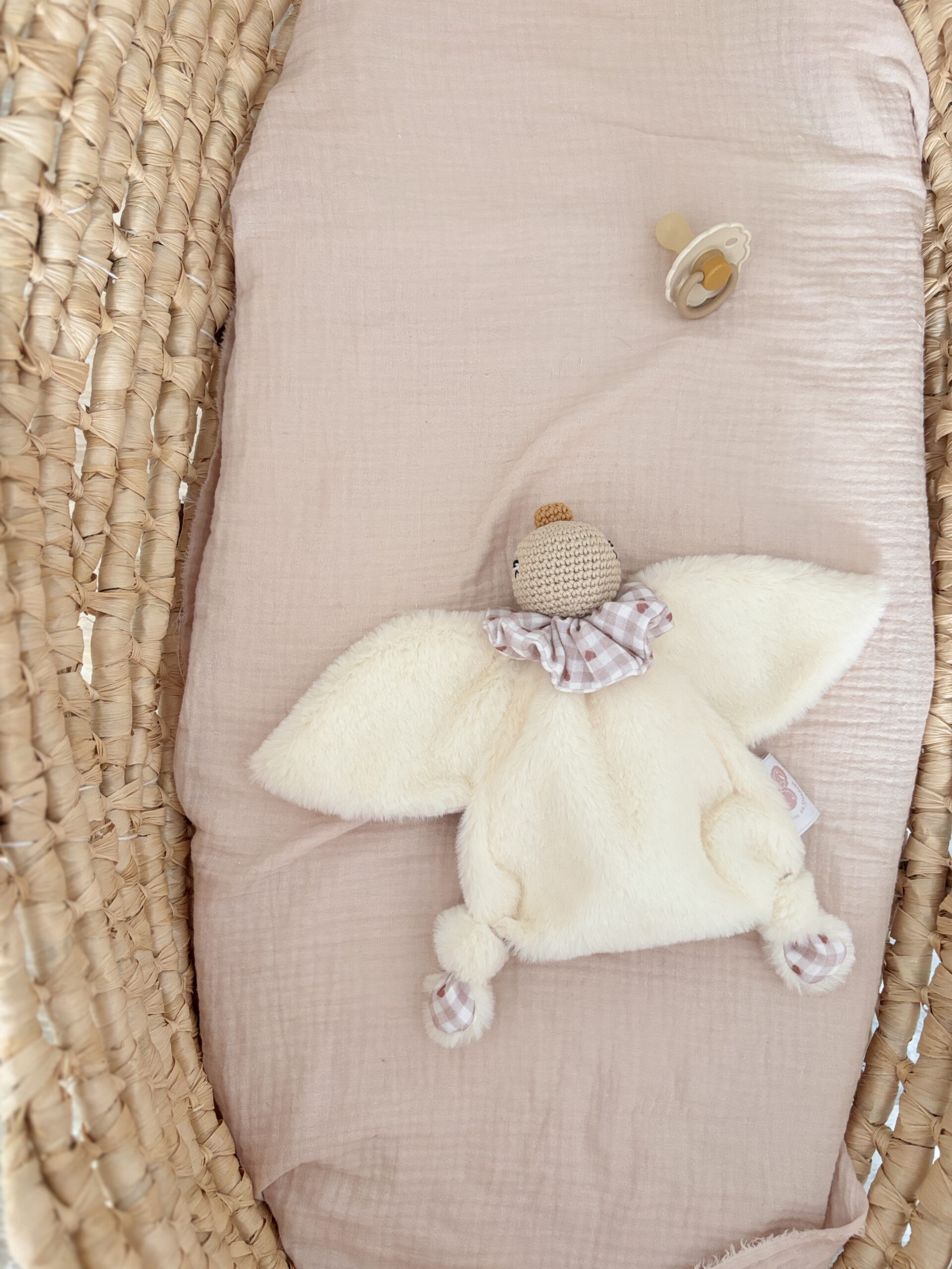 Chaque doudou est réalisé entièrement à la main, et est donc unique, il se peut donc que le doudou que vous recevrez présente des petites différences avec le doudou de la photographie.