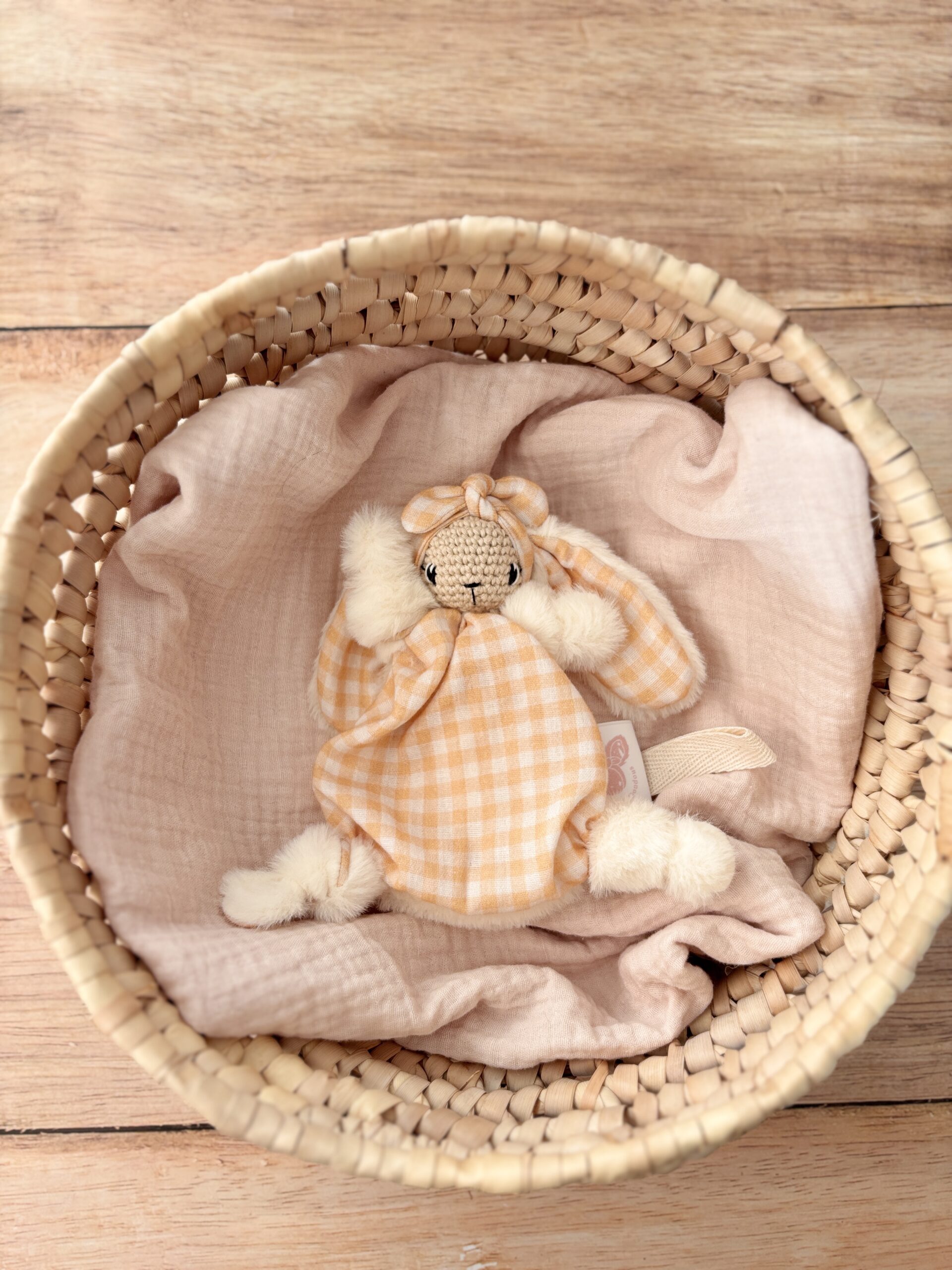 Chaque doudou est réalisé entièrement à la main, et est donc unique, il se peut donc que le doudou que vous recevrez présente des petites différences avec le doudou de la photographie.